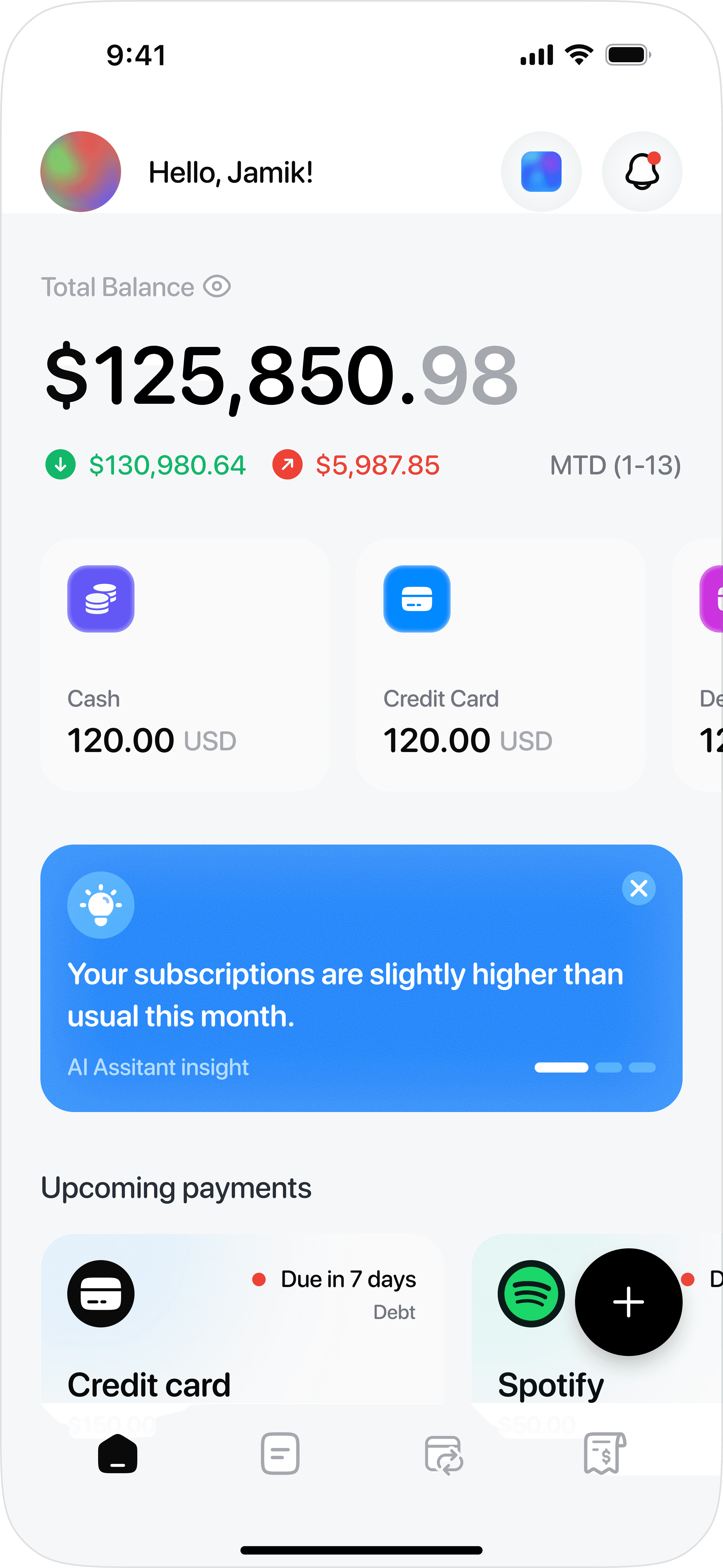 FINTECH - HOME & CARDS PAGE